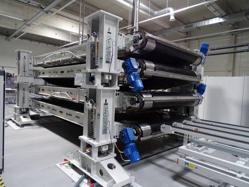 2 laminators incapcell 43-20, stacked on top of each other, lamination area each 4,520 x 1,740 mm, each with lower and upper heating platen, 2 membranes, 2 transport sheets, 2 rotating release sheets, temperature uniformity ±2°C.