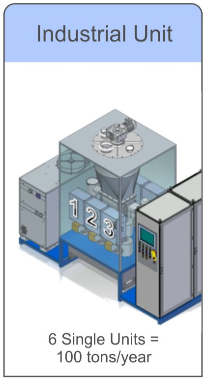 With JPM's microwave furnace silicon powder can be melted efficiently. The furnace works in batch or continuous mode producing silicon pieces of adjustable size, from small pellets to chunks and even small ingots. The furnace can be equipped with a purification unit that improves the silicon quality.